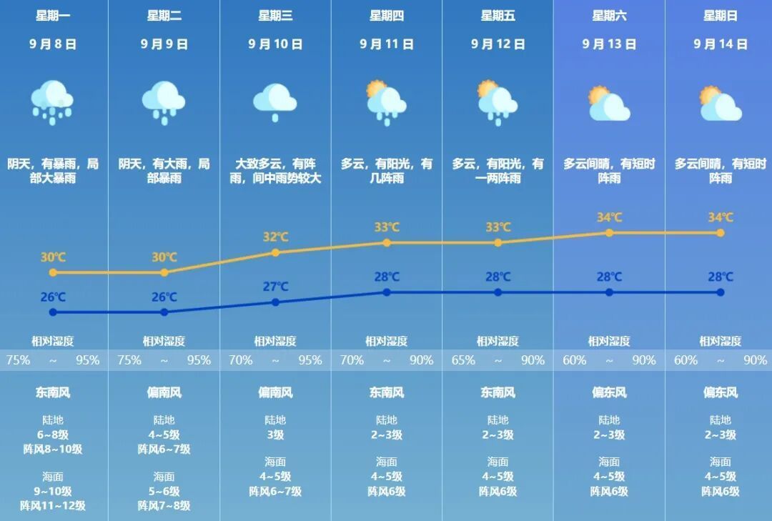 沿岸及海面风力9-11级阵风10-13级