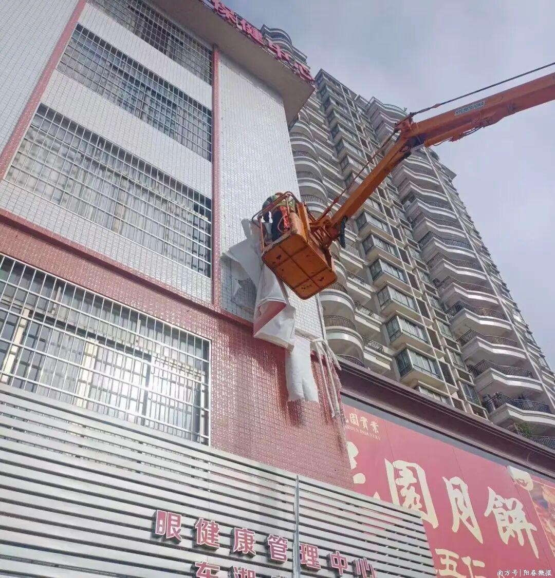 阳春市城管部门提前进入防御台风临战状态,全力以赴落实各项防御措施。截止9月7日20时,累计出动人员420余人次,对在建工地、城区易涝点、城区户外广告牌、绿化树、城市路灯等开展隐患排查整治,切实做好各项防御台风准备工作。